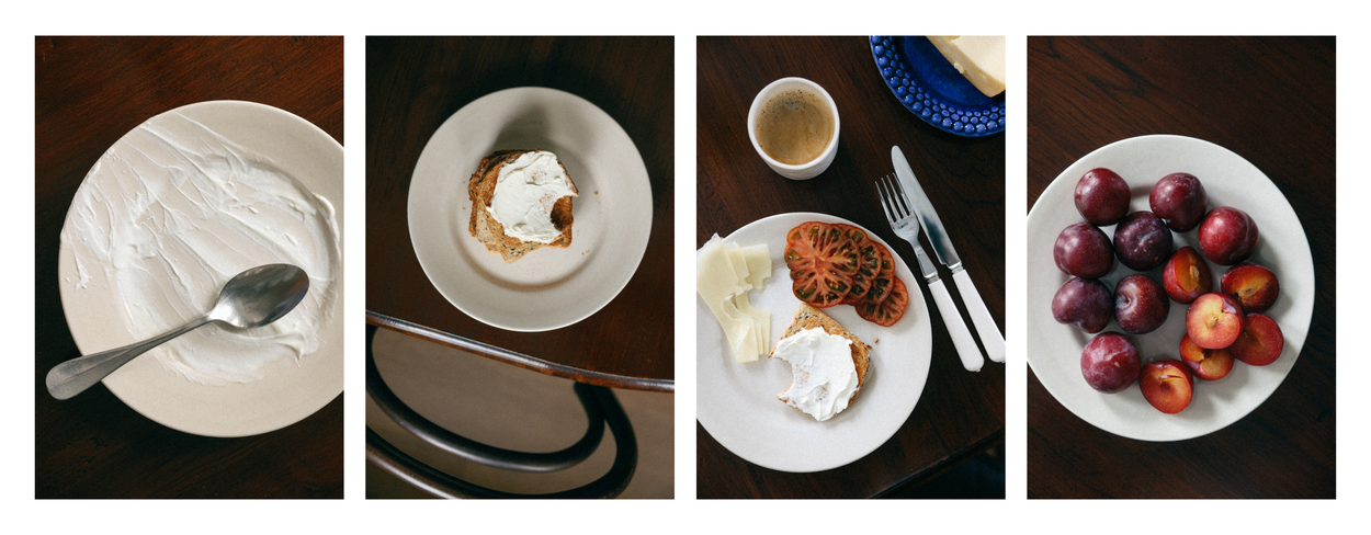 Idag bjuder Mona sina närmaste vänner på brunch. Nybakat bröd, färsk frukt och kaffe står framme på bordet, medan keramiken tyst ramar in stunden. De mjuka glasyrerna och de handgjorda ytorna fångar morgonljuset på olika sätt under timmarnas gång. Ibland kan en helgbrunch sträcka sig över hela dagen och övergå i eftermiddagste och till och med middag. Under sådana dagar rör sig keramiken sömlöst mellan tillfällena: från tidig morgon till långa kvällar runt samma bord.
