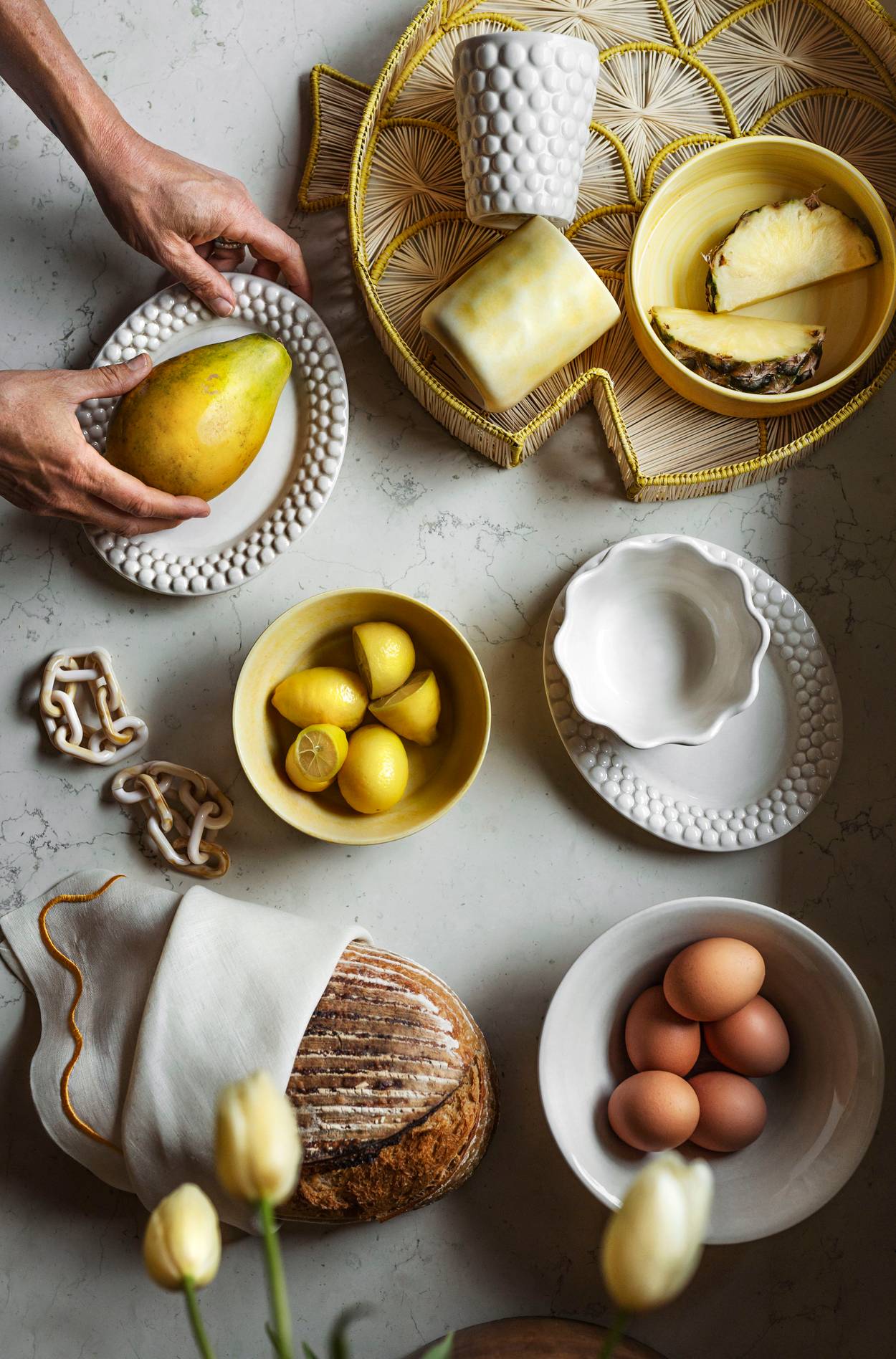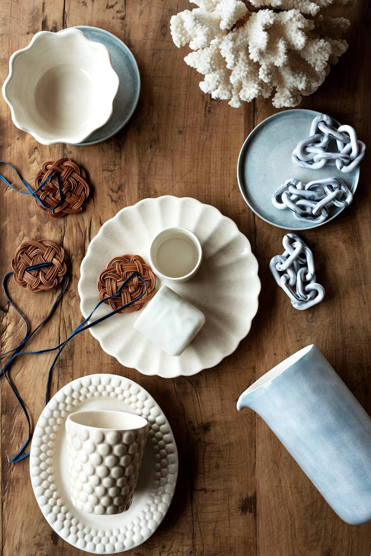 Njut av en härlig lunch eller middag med keramik i olika former. Skapa en vacker dukning i dova toner och bjud in dina nära och kära för att njuta av god mat och gott sällskap. Anpassa din dukning efter din personliga stil med dukar, servetter och blommor.